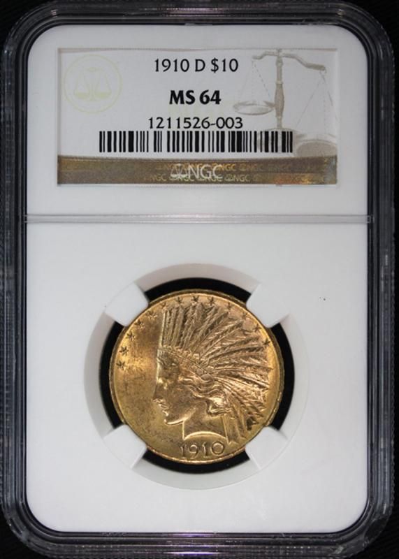 アメリカ United States of America インディアンヘッド 10ドル金貨 1910年D NGC MS64
