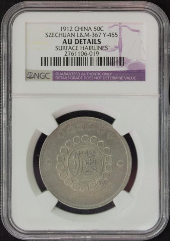 中国 China 四川省 軍政府造 五角銀貨 50セント 中華民国元年 1912年 NGC AU DETAILS
