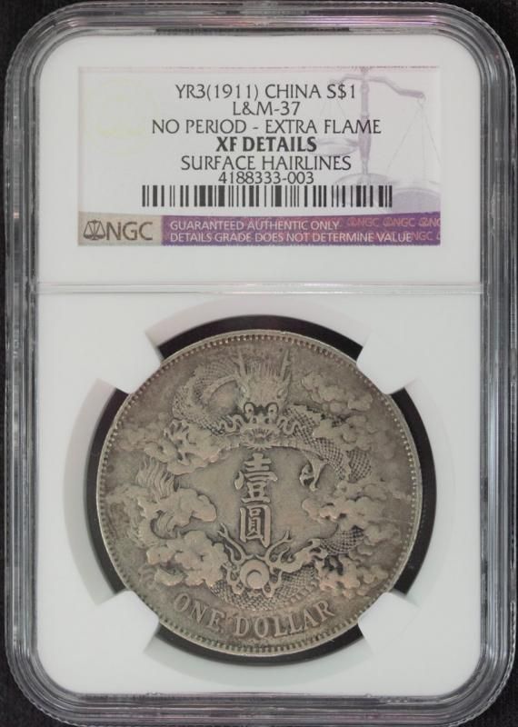 中国 China 大清銀幣 壹圓 1ドル銀貨 宣統三年 1911年 NGC XF DETAILS