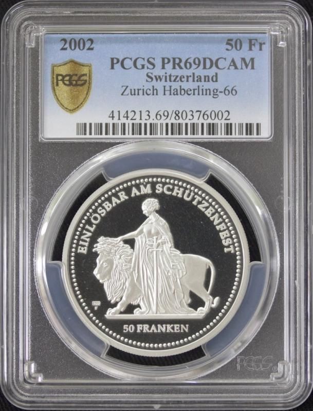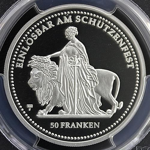 スイス Switzerland スイス現代射撃祭 チューリッヒ Zurich ウナとライオン 50フラン銀貨 2002年 PCGS PR69 DEEP CAMEO