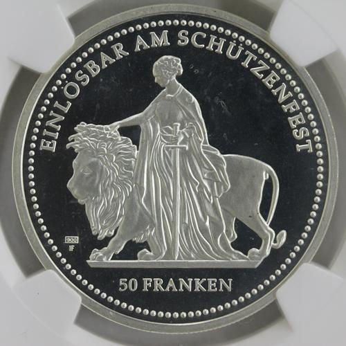 スイス Switzerland スイス現代射撃祭 チューリッヒ ウナとライオン 50フラン銀貨 2002年 NGC PF66 ULTRA CAMEO