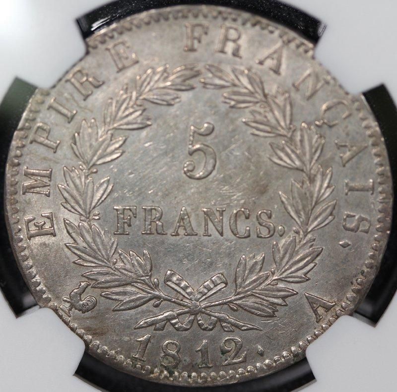 フランス France ナポレオン1世 Napoleon I 月桂冠 5フラン銀貨 1812年A NGC AU55