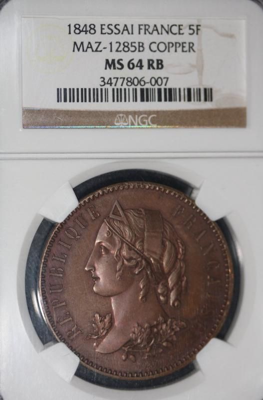 フランス France 5フラン銅貨 ESSAI 試作貨 1848年 NGC MS64RB