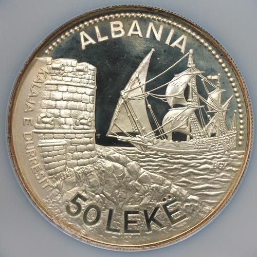 アルバニア Albania DURAZZO SEAPORT 50レク銀貨 5オンス 1987年 NGC PF67 ULTRA CAMEO