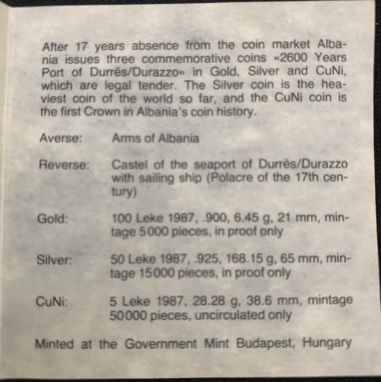 Seaport of Durazzo Silver Proof 50Leke 1987