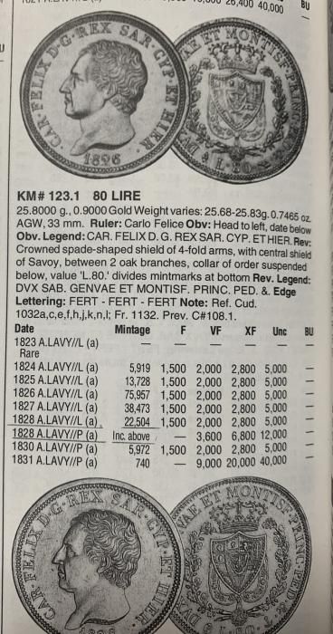 イタリア Italy サルデーニャ カルロ・フェリーチェ 80リラ金貨 1828年