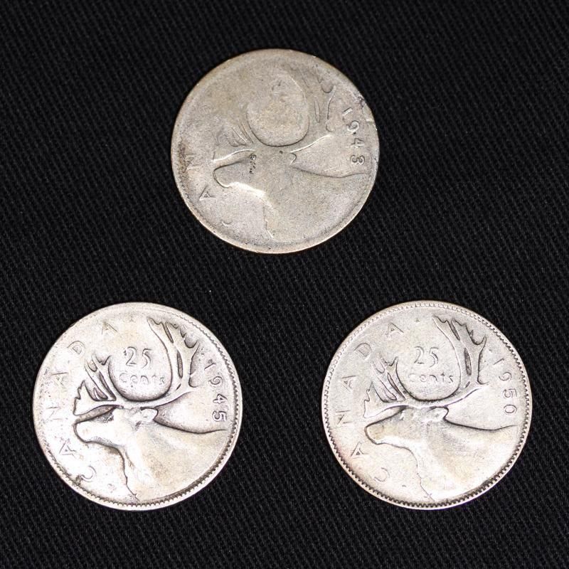 カナダ Canada ジョージ6世 カリブー 25セント銀貨 1943年/1945年/1950年 3枚